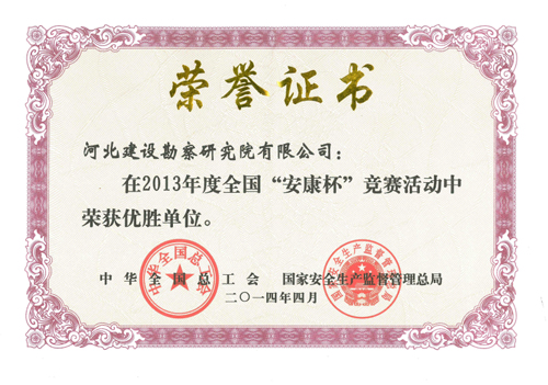 公司在2013年度“安康杯”安全生產(chǎn)競賽中,被中華全國總工會、國家安全生產(chǎn)監(jiān)督管理總局評為優(yōu)勝單位。這是我公司連續(xù)第十年獲此殊榮。