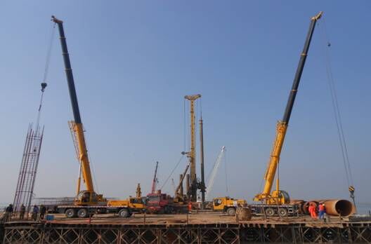 開(kāi)工日期:2013年8月26日,竣工日期:2014年6月14日。寧高主橋樁基工程,施工合同任務(wù)為216-219號(hào)四個(gè)主墩,樁徑為1.8m、2.0m兩種,有效樁長(zhǎng)為50m-73m,設(shè)計(jì)孔深62m-89m的鉆孔灌注樁共計(jì)78根,合同工作量13762m³。第二個(gè)施工合同任務(wù)為引橋樁基直徑1m的樁160根,有效樁長(zhǎng)24-40m,直徑1.25m的樁31根,有效樁長(zhǎng)27-35m,直徑1.6m的樁27根,有效樁長(zhǎng)43-45m,直徑1.8m的樁33根,有效樁長(zhǎng)30-45m。