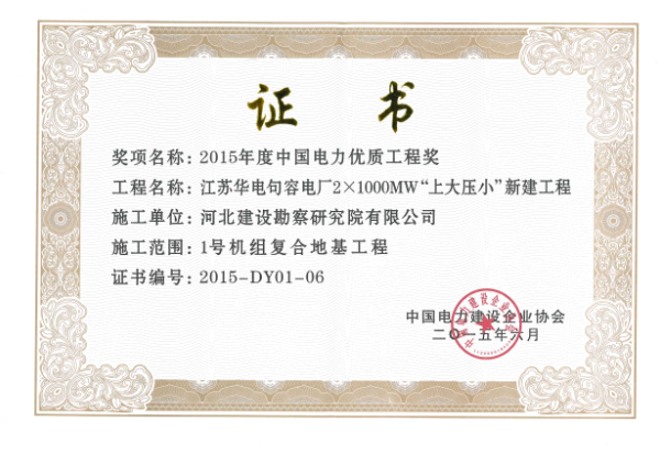 近日,我公司參建的江蘇華電句容電廠2×1000MW“上大壓小”新建工程獲得2015年度中國電力優(yōu)質(zhì)工程獎(jiǎng)。