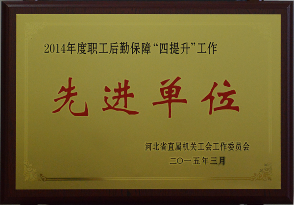 公司在2014年度職工后勤保障“四提升”活動中,被河北省直屬機關工會工作委員會評為省直系統(tǒng)先進單位。