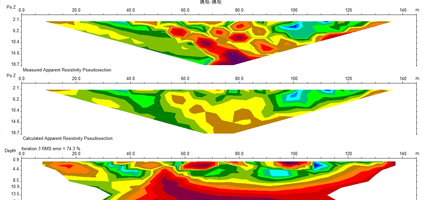 項(xiàng)目除了采用地質(zhì)調(diào)查測(cè)繪、鉆探、井探、常規(guī)巖土試驗(yàn)和巖石剪切試驗(yàn)外,還采用了瑞雷波勘探和高密度映像物探手段,根據(jù)物探結(jié)果并結(jié)合鉆探資料客觀的分析了覆蓋層厚度、滑體的空間分布特征及基巖表面破碎程度,得到全面真實(shí)的滑體空間分布特征。
