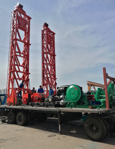 6、鉆機(jī)采用模塊化結(jié)構(gòu)設(shè)計(jì),具有可獨(dú)立使用的轉(zhuǎn)盤部分、變速箱卷揚(yáng)部分、動(dòng)力部分、泥漿循環(huán)系統(tǒng)、拖車部分、鉆塔部分。具有配套齊全、結(jié)構(gòu)緊湊的設(shè)計(jì)特色。該鉆機(jī)于2014年3月19日獲得國(guó)家實(shí)用新型專利,2015年2月13日獲得河北省建設(shè)行業(yè)科學(xué)技術(shù)進(jìn)步一等獎(jiǎng),并獲得河北省科學(xué)技術(shù)進(jìn)步獎(jiǎng)三等獎(jiǎng)。