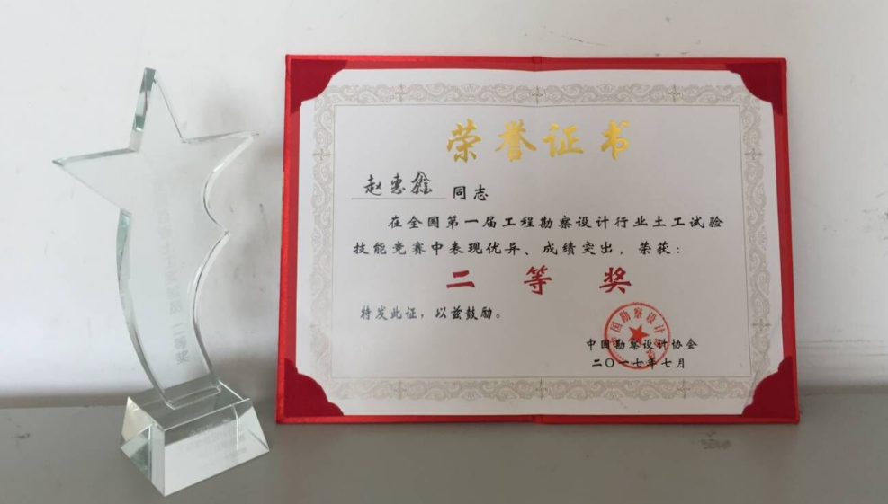 我公司趙惠鑫同志獲全國(guó)工程勘察設(shè)計(jì)行業(yè)土工試驗(yàn)技能競(jìng)賽個(gè)人二等獎(jiǎng)