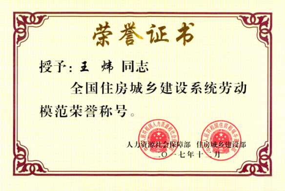 工會主席王煒榮獲全國住房城鄉(xiāng)建設(shè)系統(tǒng)勞動模范榮譽稱號