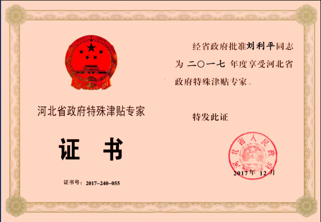 經(jīng)公司推薦申報(bào)、市人力資源和社會(huì)保障局初評(píng)、省人力資源和社會(huì)保障廳組織專家綜合評(píng)委會(huì)評(píng)審,報(bào)省委人才工作領(lǐng)導(dǎo)小組審核、省政府批準(zhǔn),公司副總經(jīng)理劉利平榮獲省政府特殊津貼專家稱號(hào)。