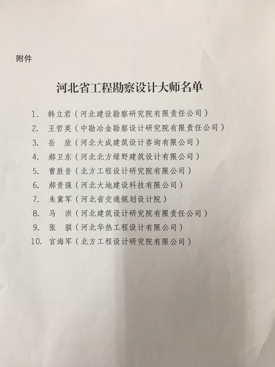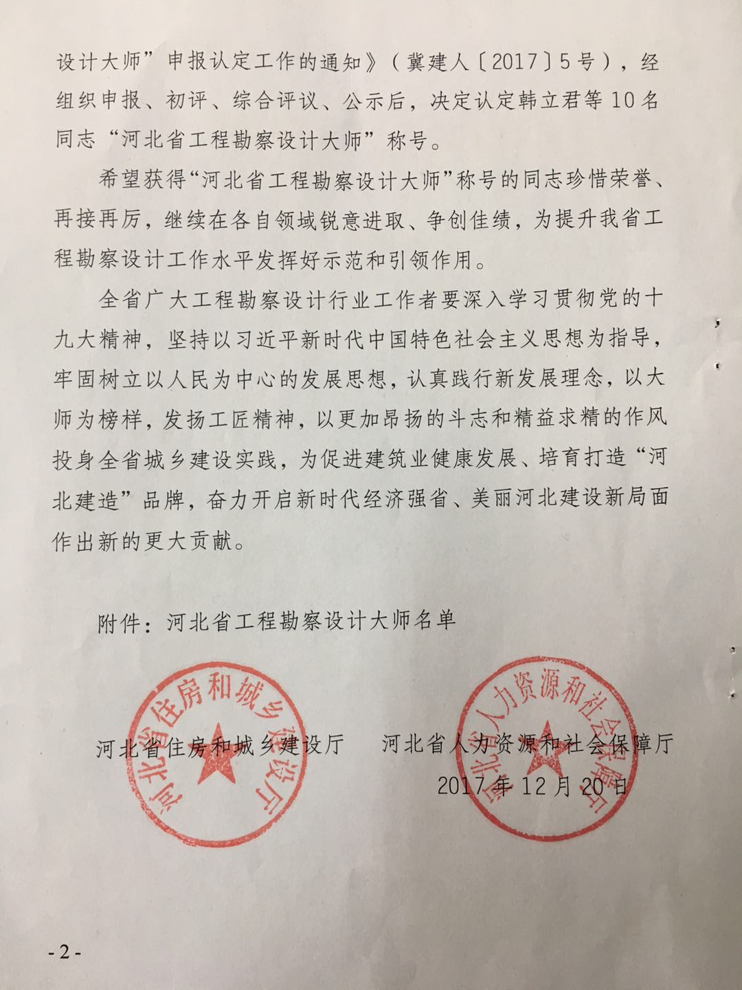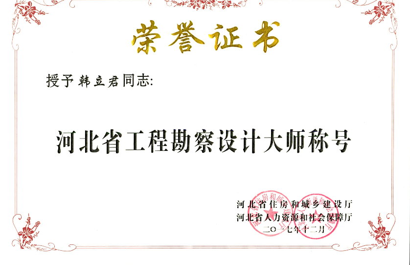 公司董事長(zhǎng)韓立君榮獲“河北省工程勘察設(shè)計(jì)大師”稱號(hào)