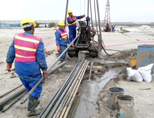 本項(xiàng)目采用了鉆探、靜力觸探試驗(yàn)、標(biāo)準(zhǔn)貫入試驗(yàn)、波速測試等原位測試手段,并結(jié)合室內(nèi)巖土試驗(yàn),準(zhǔn)確的查明了地基土的空間分布特征,評價了地基土的固結(jié)狀態(tài)特性和導(dǎo)電特性,全面綜合分析了地基土的特殊性質(zhì);采用孔內(nèi)激發(fā)測試剪切波,和強(qiáng)震源地面激發(fā)孔內(nèi)測試縱波相結(jié)合的方式,實(shí)現(xiàn)了波速測井設(shè)備的輕便化,同時彌補(bǔ)了地面激發(fā)震源能量不足測深較深時無法測出波速的問題,并科學(xué)合理的提供了動力設(shè)計參數(shù);單樁承載力分析中,評價了吹填土固結(jié)對樁基產(chǎn)生的下拉荷載影響,綜合給定單樁承載力特征值,結(jié)合儲罐樁基屬超長大直徑灌注樁和場地土層工程特性,對樁基設(shè)計和施工工藝提出了針對性建議。