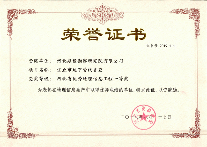公司三項工程榮獲河北省測繪學會優(yōu)秀地理信息工程獎