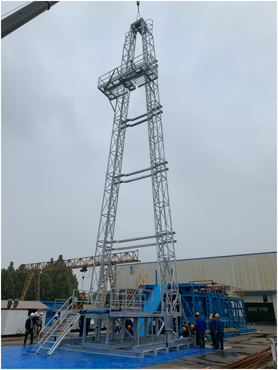 河北建勘鉆探設(shè)備有限公司為日本金泉株式會社研制的A25-50/1.5(RESORT 21HD)熱鍍鋅鉆塔,已經(jīng)全部安裝調(diào)試完成,2019年10月17日,日本內(nèi)田金泉株式會社的總經(jīng)理內(nèi)田米房一行來到河北建勘鉆探設(shè)備有限公司,對銀光閃閃的鉆塔外觀質(zhì)量、安裝過程、基本參數(shù)進(jìn)行了檢查驗收,對鉆塔設(shè)計制造綜合技術(shù)指標(biāo)評價滿意,順利通過日方驗收。