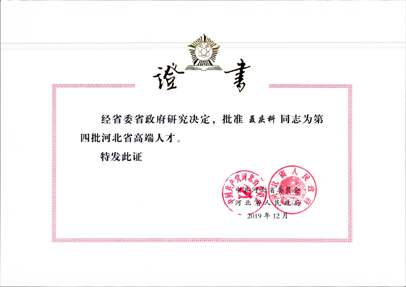 經(jīng)公司申報(bào)、中共石家莊市委組織部推薦,中共河北省委、省政府批準(zhǔn),公司總工程師聶慶科列入河北省高端人才第四批支持計(jì)劃名單,支持期限為2019年12月至2024年11月,每年將獲得30萬(wàn)元的專項(xiàng)資金支持。