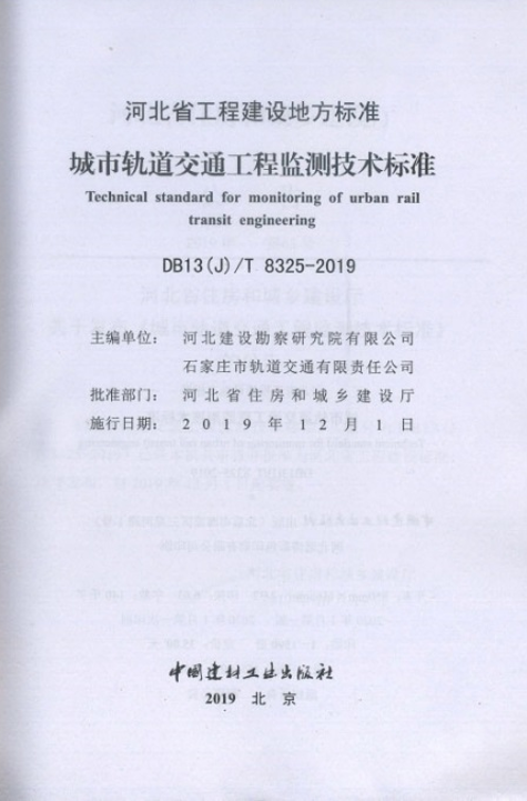 近日我公司主編的河北省工程建設(shè)地方標(biāo)準(zhǔn)《城市軌道交通工程監(jiān)測技術(shù)標(biāo)準(zhǔn)》(DB13(J)/T8325-2019)由河北省住房和城鄉(xiāng)建設(shè)廳發(fā)布,于2019年12月1日起實(shí)施,正式出版發(fā)行。這是由我公司主編發(fā)行的第11項(xiàng)地方標(biāo)準(zhǔn)。