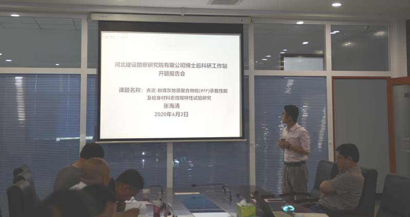 2020年6月2日下午,公司博士后工作站舉辦博士后研究人員張海清的開題報告會。由博士后工作站站長聶慶科正高級工程師、河北省建筑科學(xué)研究院副院長王維玉正高級工程師、北京交通大學(xué)白冰教授、河北科技大學(xué)張亞通教授、河北省生態(tài)環(huán)境廳謝劍鋒正高級工程師組成專家組,對張海清博士研究的《赤泥-粉煤灰地質(zhì)聚合物樁(RFP)承載性能及樁身材料宏微觀特性試驗(yàn)研究》開題報告進(jìn)行了評審,公司總經(jīng)理李華偉、省人力資源和社會保障廳、市人力資源和社會保障局有關(guān)領(lǐng)導(dǎo)參加了報告會。