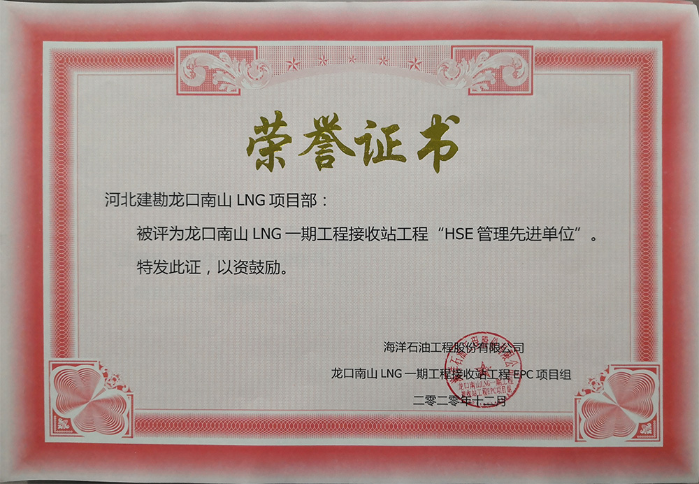 2020年12月,公司收到海洋石油工程股份有限公司發(fā)來的表揚信,對我公司在龍口南山LNG一期工程接收站工程EPC項目儲罐樁基工程標(biāo)段一施工過程中,面對施工現(xiàn)場地質(zhì)情況復(fù)雜、新工藝、施工難度大、氣候炎熱多雨、新冠疫情、人材機緊缺等不利因素,按合同要求順利完成了一標(biāo)段1#和2#儲罐3497根振沖碎石樁和720根樁柱一體化灌注樁全部施工任務(wù),給予了高度認可和好評,并表示感謝!我公司被評為“質(zhì)量管理先進單位”和“HSE管理先進單位”并頒發(fā)了榮譽證書,同時對先進個人頒發(fā)了“優(yōu)秀項目管理者”、 “HSE管理先進個人”、 “質(zhì)量管理先進個人”榮譽證書。