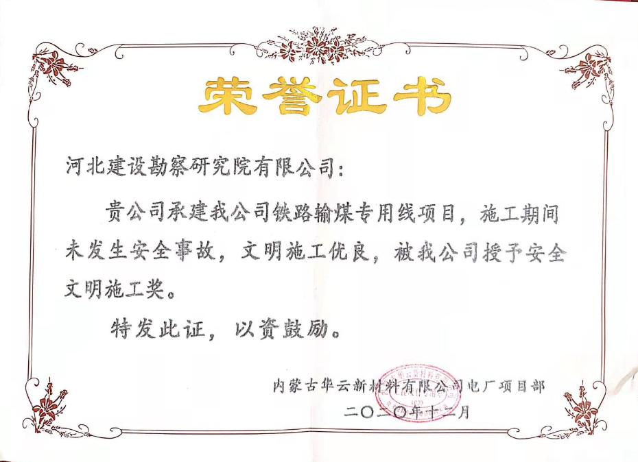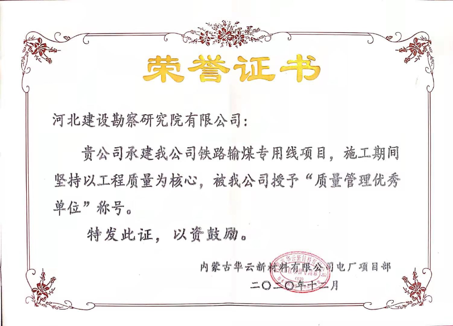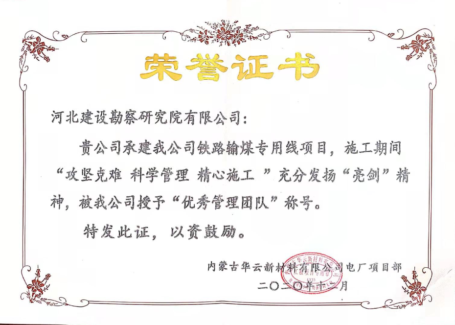 日前,由我公司承建的內(nèi)蒙古華云新材料鐵路專用線輸煤系統(tǒng)工程翻車機深基坑支護工程已順利完工。業(yè)主內(nèi)蒙古華云新材料有限公司熱電廠向我公司發(fā)來表揚函,同時頒發(fā)了“優(yōu)秀管理團隊”、“質(zhì)量管理優(yōu)秀單位”、“安全文明施工”榮譽稱號。