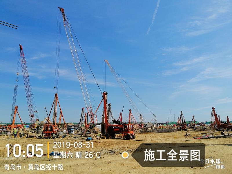 本工程投入管理人員、施工人員350余人、施工設(shè)備為沖擊鉆機(jī)54臺(tái),旋挖鉆機(jī)2臺(tái),鏟車3臺(tái),挖掘機(jī)8臺(tái),拉漿車2臺(tái),50T履帶式吊車3臺(tái),70T履帶式吊車3臺(tái),25T履帶式吊車3臺(tái)。自2019年8月21日開(kāi)工至2019年12月16日完工;工期總計(jì)116日歷天。共完成樁基1218根。實(shí)際完成工作量35478.2m。