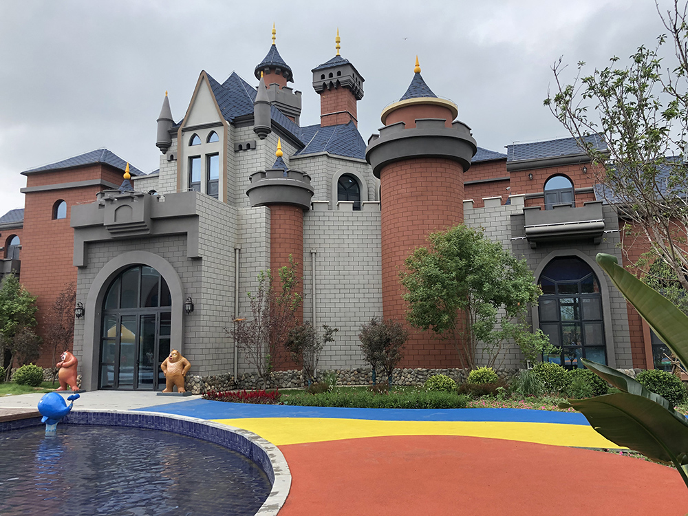 辛集展園總用地面積約13畝,總建筑面積3034.63平方米。主要包括兒童館、配套客房、消防水池、以及園區(qū)景觀構(gòu)筑物和綠化工程。建設(shè)主題是兒童嘉年華,功能布局為“一心一軸五區(qū)”,一心為中心娛樂區(qū),一軸為中央景觀軸,五區(qū)為童話城堡、童趣樂園、戲水樂園、運動樂園、主題酒店;打造交流+狂歡互動+健身、科普+經(jīng)營為一體的生態(tài)兒童嘉年華活力童話娛樂城。