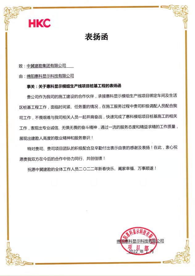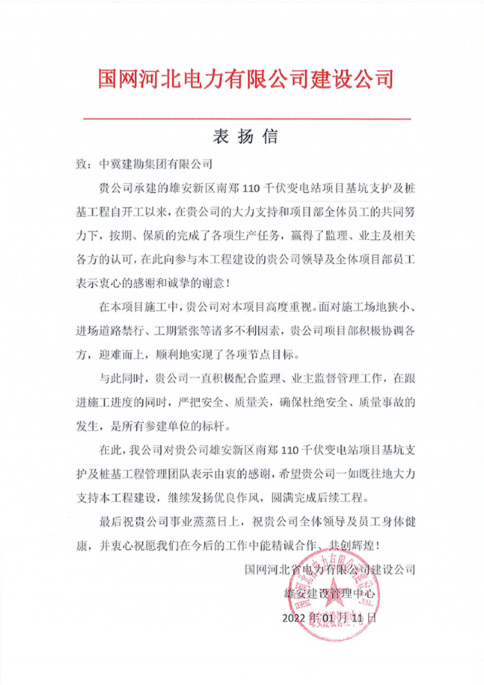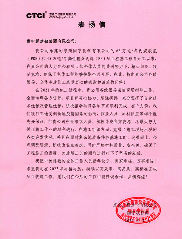 近期,公司連續(xù)收到業(yè)主及總包方發(fā)來的表揚(yáng)信及榮譽(yù)稱號,對我公司所承擔(dān)的多個(gè)工程項(xiàng)目的生產(chǎn)組織、質(zhì)量管控、安全文明施工等給予了充分肯定。