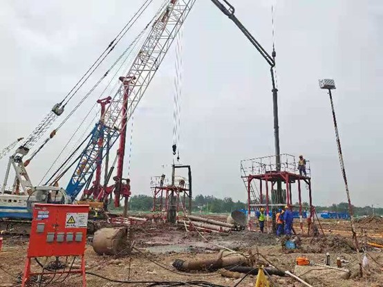 本工程于2021年5月7日開工,歷時72天,兩臺儲罐于7月13日全部完工。共完成鋼筋混凝土灌注樁600根(包含能源樁240根),廠區(qū)內臨時道路約12000m2,能源樁水平管施工等工作量。