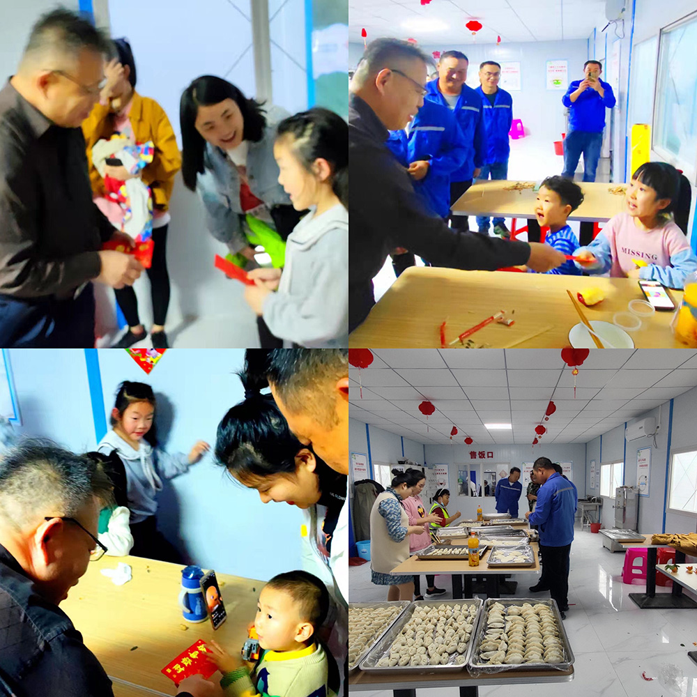 除夕之夜,項目部歡聲笑語、熱鬧非凡,洋溢著濃濃的春節(jié)氣息。李總與大家歡聚一堂,還為項目員工的孩子們準(zhǔn)備了新年紅包,員工家屬們也參與其中,包起了年夜餃子,大家其樂融融一起喜迎新年,讓沒能回家過節(jié)的員工們切實感受到大家庭的溫暖。