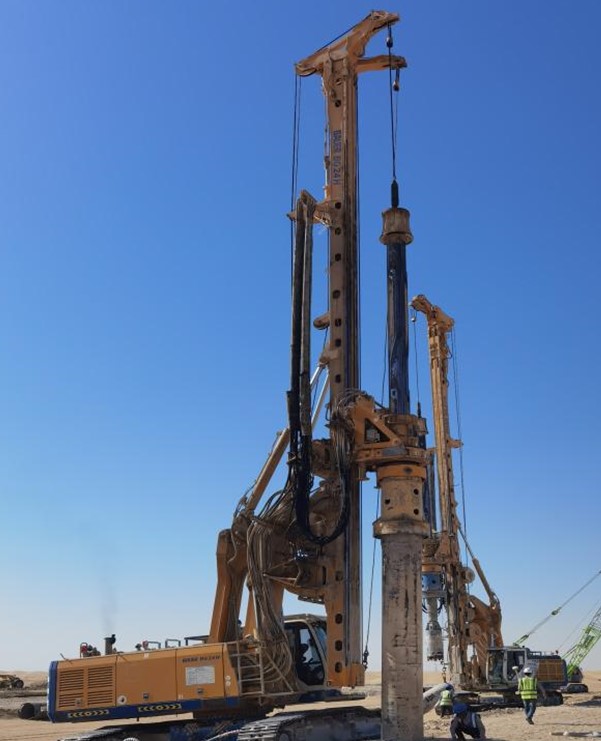 該項(xiàng)目位于迪拜,是穆罕默德·本·拉希德·阿勒馬克圖姆太陽能公園的第四區(qū)。受中建三局委托,我公司承擔(dān)本項(xiàng)目樁基施工,采用公司自有旋挖鉆機(jī)及錨桿鉆機(jī)進(jìn)行干孔灌注樁施工工藝施工,共完成混凝土灌注樁9874根,灌注樁樁身完整性檢測3300根,水平側(cè)向載荷試驗(yàn)36根,驗(yàn)證荷載試驗(yàn)7根。