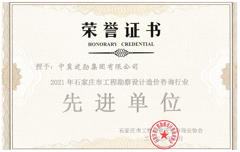近日,石家莊市工程勘察設(shè)計咨詢業(yè)協(xié)會下發(fā)文件《關(guān)于表彰2021年石家莊市工程勘察設(shè)計造價咨詢行業(yè)先進(jìn)單位和先進(jìn)個人的通知》(石設(shè)協(xié)字【2022】6號),我公司被授予“2021年石家莊市工程勘察設(shè)計造價咨詢行業(yè)先進(jìn)單位”稱號,韓立君同志、商衛(wèi)東同志被授予“2021年石家莊市工程勘察設(shè)計造價咨詢行業(yè)先進(jìn)個人”稱號。此榮譽(yù)的獲得說明了公司在貫徹高質(zhì)量發(fā)展戰(zhàn)略方面取得了良好業(yè)績,為推動我市勘察設(shè)計行業(yè)高質(zhì)量發(fā)展做出了積極貢獻(xiàn),得到了行業(yè)的肯定和認(rèn)可。