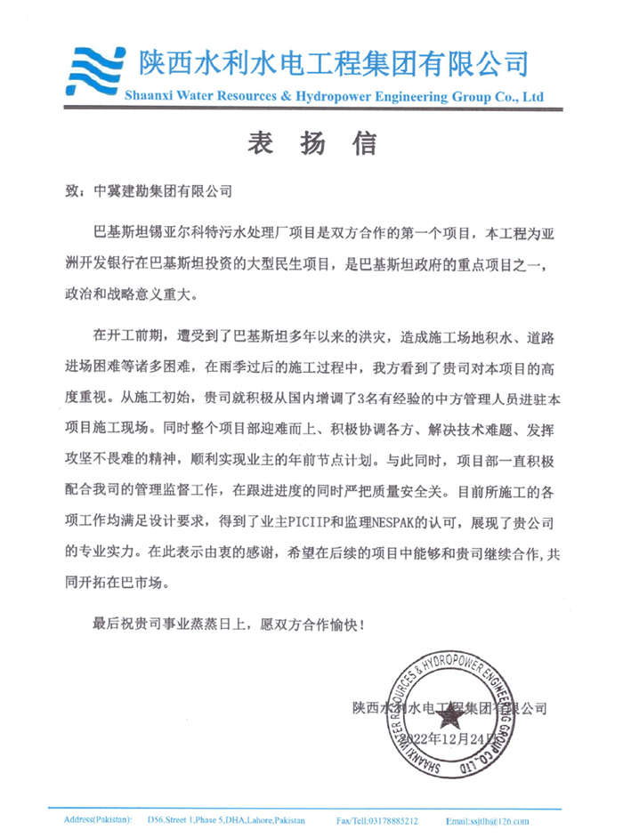 巴基斯坦錫亞爾科特污水處理廠項目是我方和陜西水利水電工程集團(tuán)有限公司合作的第一個項目,是亞洲開發(fā)銀行在巴基斯坦投資的大型民生項目,是巴基斯坦政府的重點(diǎn)項目之一,政治和戰(zhàn)略意義重大。在工程前期,遭受到了巴基斯坦多年以來的洪災(zāi),造成施工場地積水、道路進(jìn)場等諸多困難。我們整個項目部高度重視,迎難而上、積極協(xié)調(diào)各方、解決技術(shù)難題、發(fā)揮攻堅不畏難的精神,順利實(shí)現(xiàn)業(yè)主的年前節(jié)點(diǎn)計劃。目前施工的各項工作均滿足設(shè)計要求,得到了業(yè)主PICIIP和監(jiān)理NESPAK的認(rèn)可,展現(xiàn)了我公司的專業(yè)實(shí)力。業(yè)主希望在后續(xù)的項目中能夠和我公司繼續(xù)合作,共同開拓巴基斯坦市場。