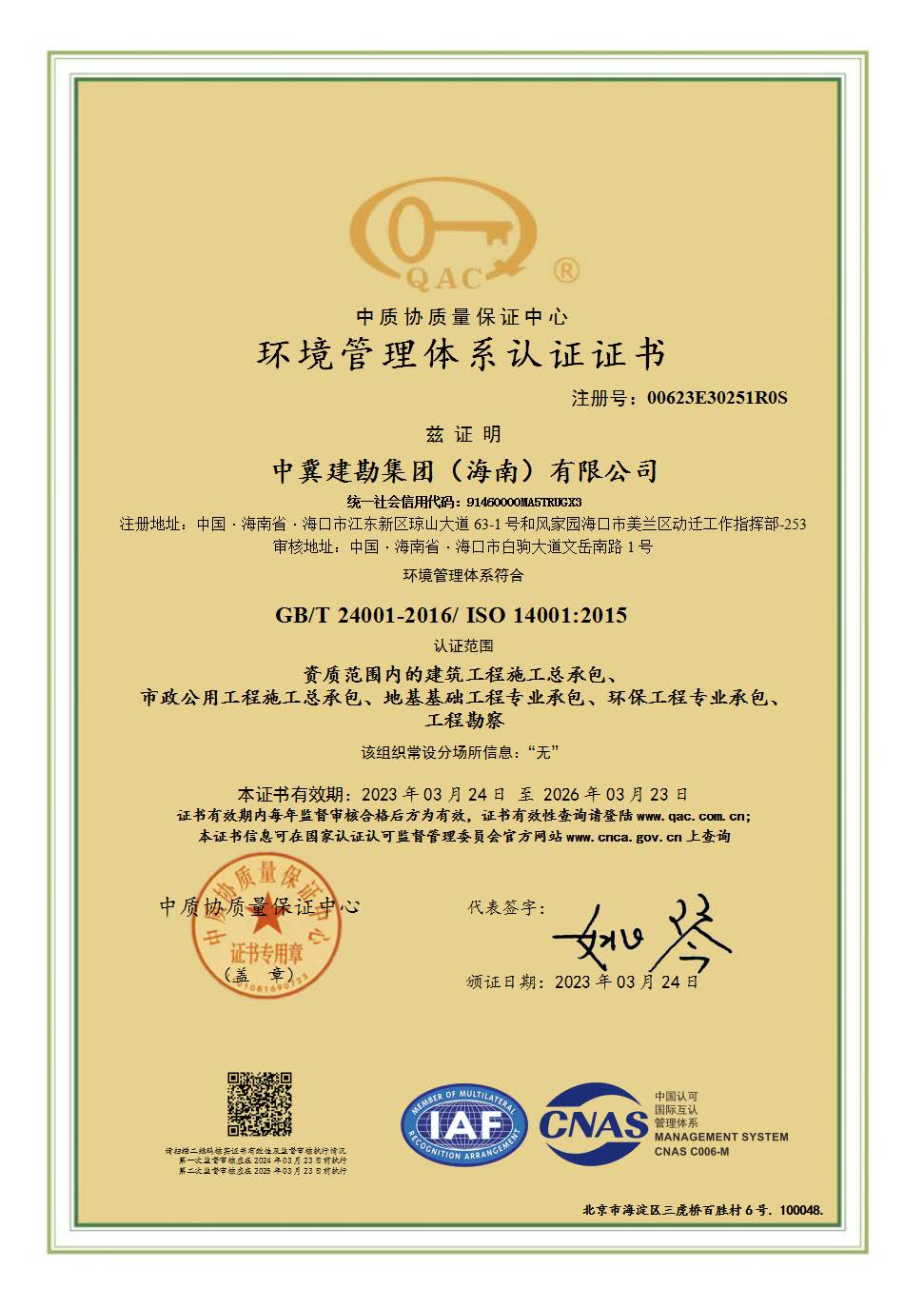 本次認(rèn)證范圍覆蓋了中冀建勘集團(tuán)(海南)有限公司現(xiàn)有的建筑工程施工總承包、市政公用工程施工總承包、地基基礎(chǔ)工程專業(yè)承包、環(huán)保工程專業(yè)承包及工程勘察資質(zhì)。這標(biāo)志著質(zhì)量管理體系(GB/T19001-2016)、環(huán)境管理體系(GB/T24001-2016)、職業(yè)健康安全管理體系(GB/T45001-2020)在中冀建勘集團(tuán)(海南)有限公司有效貫徹運(yùn)行。