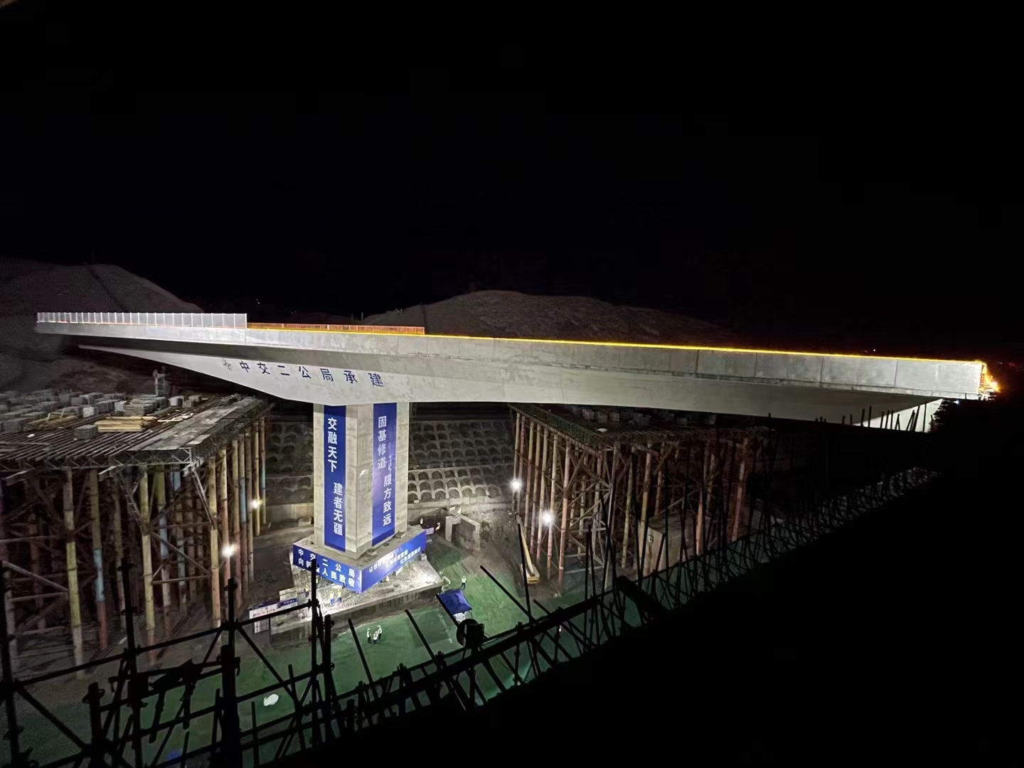 烏魯木齊市東二環(huán)項目燕北高架橋,上跨蘭新鐵路,橋面寬度32.5米,跨度70米,雙向八車道城市快速路,是新疆噸位最大、跨徑最大的轉(zhuǎn)體橋,轉(zhuǎn)體段總重16500噸。主橋梁采用鋼立柱+貝雷梁+承插型盤扣式鋼管腳手架等組合架體現(xiàn)澆施工,架體高度36米,耗用鋼材4000多噸,現(xiàn)澆完成后形成兩個長55米的T形構(gòu)架,然后轉(zhuǎn)體77°合攏,跨度為70米,是項目全線重難點控制性工程,同時也是目前新疆地區(qū)最大的市政工程轉(zhuǎn)體橋梁。