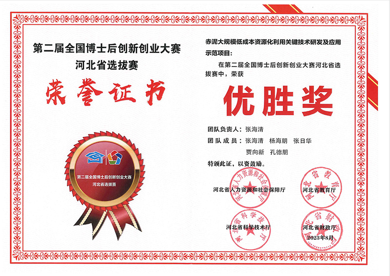 公司博士后科研工作站兩項課題分別榮獲第二屆全國博士后創(chuàng)新創(chuàng)業(yè)大賽河北省選拔賽銅獎、優(yōu)勝獎