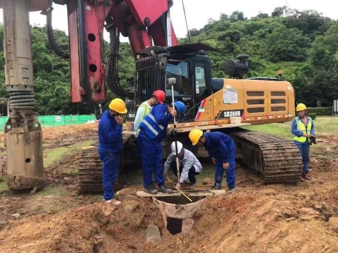 在進行GIS區(qū)域樁基施工過程中,發(fā)現(xiàn)該施工區(qū)域的地下管線走向及位置與建設(shè)單位提供的竣工圖不符。項目部積極與設(shè)計、監(jiān)理、業(yè)主等單位協(xié)調(diào)溝通,采用人工挖探坑、金屬探測儀等方式探明地下管線,在保證施工進度的同時也避免了因地下管線問題造成的施工事故。