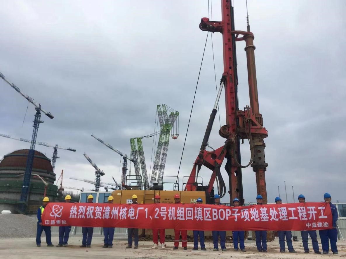 漳州核電廠1、2號(hào)機(jī)組回填區(qū)BOP子項(xiàng)地基處理EPC工程位于福建省漳州市,由中核國電漳州能源有限公司投資建設(shè)。工程共計(jì)完成直徑為600mm,680m,800mm的素混凝土樁1713根,直徑為600mm灌注樁579根。