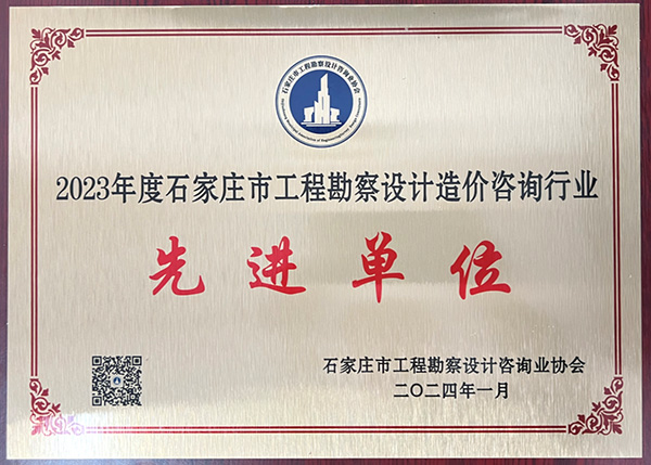 近日,石家莊市工程勘察設計咨詢業(yè)協(xié)會下發(fā)《關于表彰2023年度石家莊市工程勘察設計造價咨詢行業(yè)先進單位和先進個人的通知》(石設協(xié)字【2024】3號),我公司被授予“2023年度石家莊市工程勘察設計造價咨詢行業(yè)先進單位”稱號,韓立君同志、商衛(wèi)東同志被授予“2023年度石家莊市工程勘察設計造價咨詢行業(yè)先進個人”稱號。