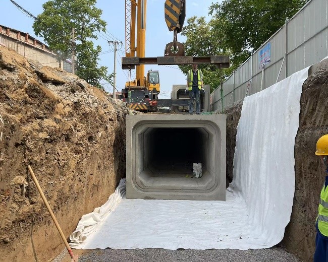 本工程主要施工特點(diǎn)是在保證周邊居民正常生活排水的前提下,在淤泥質(zhì)粉土地層中通過(guò)開(kāi)槽法進(jìn)行雨污水管道安裝施工。工程于2023年4月20日開(kāi)工,12月15日完工。通過(guò)對(duì)淤泥質(zhì)粉土地層的加固處理以及管道安裝施工、接縫處理、回填處理和路面基層施工處理,歷時(shí)239天,圓滿(mǎn)完成合同任務(wù),經(jīng)第三方檢測(cè),合格率100%。目前申報(bào)了三項(xiàng)實(shí)用新型專(zhuān)利,一項(xiàng)實(shí)用新型工法。