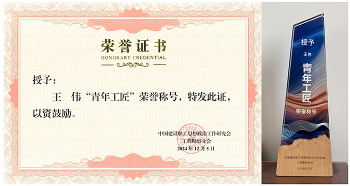 經(jīng)公司積極申報(bào)推薦,中國建設(shè)職工思想政治工作研究會(huì)工程勘察分會(huì)嚴(yán)格審核,一公司經(jīng)理王偉同志榮獲“青年工匠”榮譽(yù)稱號(hào)。