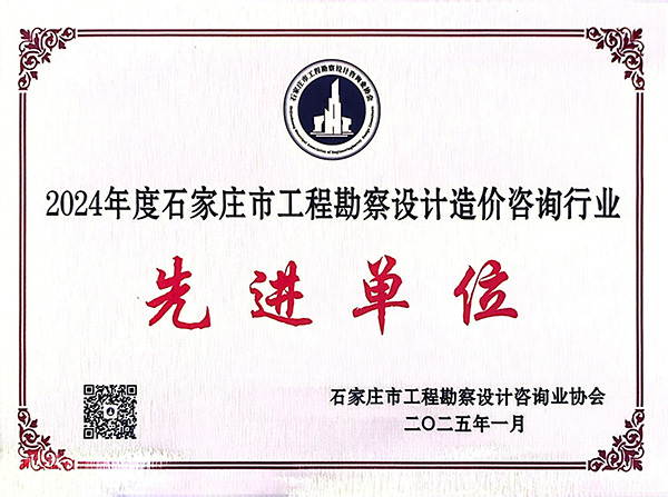 集團(tuán)公司榮獲石家莊市工程勘察設(shè)計(jì)咨詢行業(yè)2024年度“先進(jìn)單位”稱號