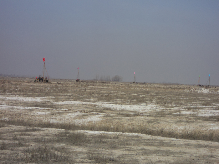 擬建項(xiàng)目位于新疆自治區(qū)五家渠市北工業(yè)區(qū),占地面積6300畝,總建筑面積60萬(wàn)平米,總投資120—140億元。該工程勘察為一期工程,包括供熱站、合成氨及硫酸廠、物流區(qū)、原料糖倉(cāng)庫(kù)及烘干車間、水廠等。擬建場(chǎng)地地表植被稀少,地表鹽漬化現(xiàn)象顯著,屬于荒漠地貌。