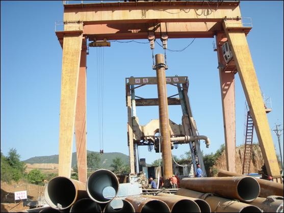 該工程位于山西省高平市泮溝村西北,設(shè)計鉆孔直徑1.2m,深度420m,表層套管規(guī)格φ1200mm×18mm螺旋管、工作套管規(guī)格φ820mm×18mm無縫管。